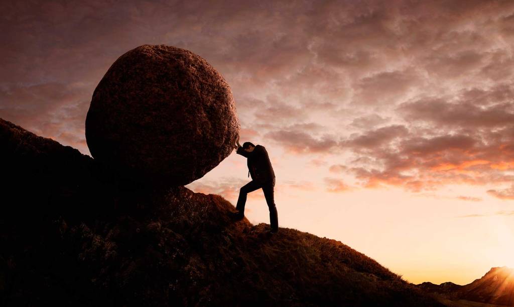 En esta imagen podemos interpretar como a la persona cargando el peso de su vida como símbolo de su esfuerzo por «llegar a la cima».
